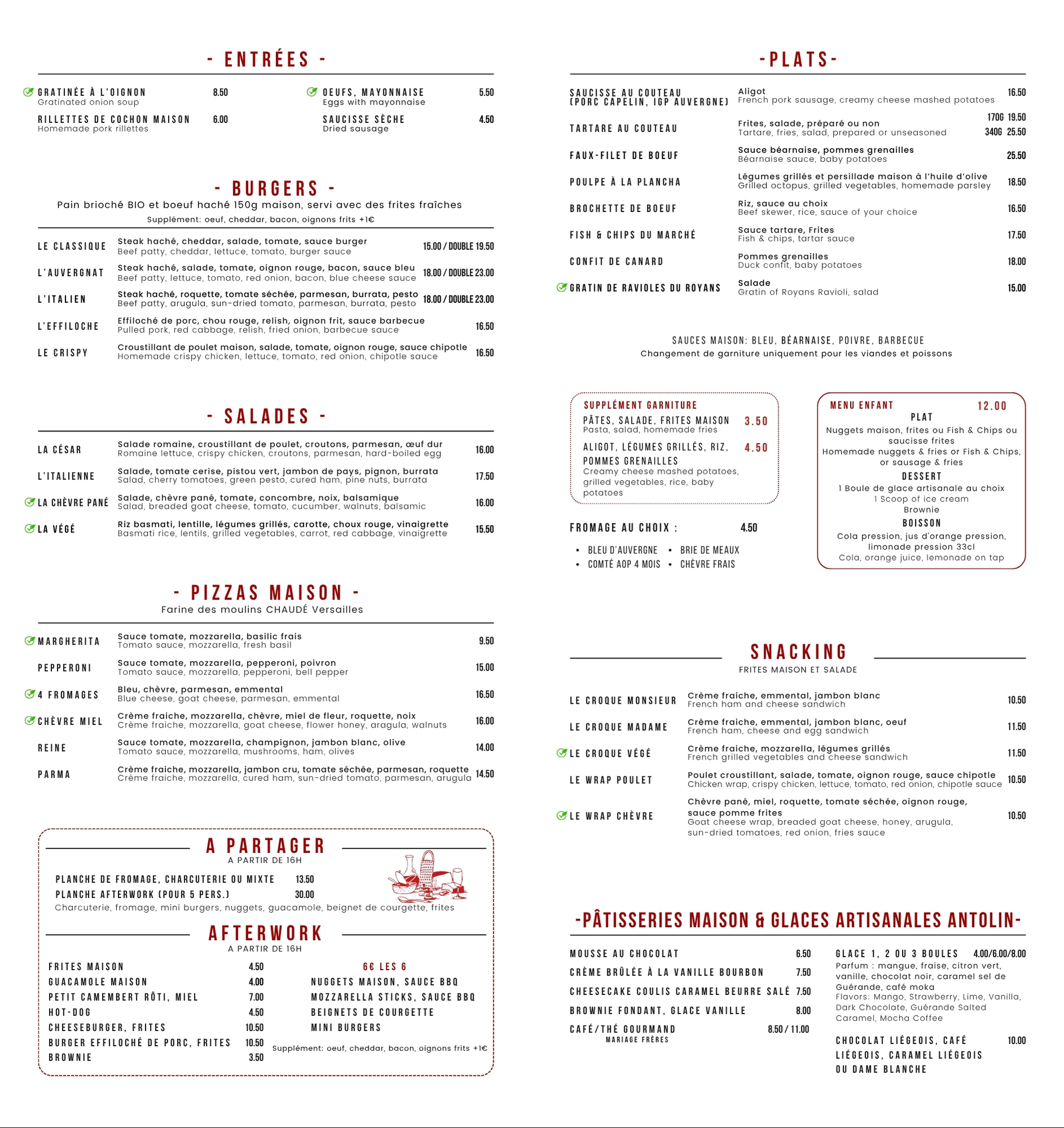 L’after work : tous les jours de 16h à 1h la pinte (50cl) de bière blonde artisanale LES PARIGOTS est à 3.5€ et l’assiette de frites maison et sa mayonnaise maison : 4.5€.